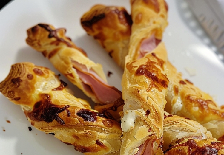 Paluchy z ciasta francuskiego z szynką i serem