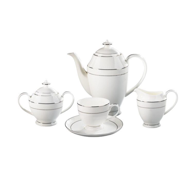 Ten stylowy serwis o prostych kształtach i subtelnym srebrnym wzorze to odwołanie do klasycznych tradycji zdobienia porcelany. Łączy w sobie zarówno zalety estetyczne, jak i użytkowe. Jest propozycją dla osób, które cenią tradycyjne piękno, i tych, dla których dobry smak oznacza raczej harmonię na stole aniżeli wystawną dekoracyjność. Połączenie wytwornej bieli z delikatnie tłoczonymi brzegami i srebrną obwódką sprawia, że komplet pasuje do szerokiego spektrum wnętrz i aranżacji. Emanuje spokojem, prostotą i naturalnością.