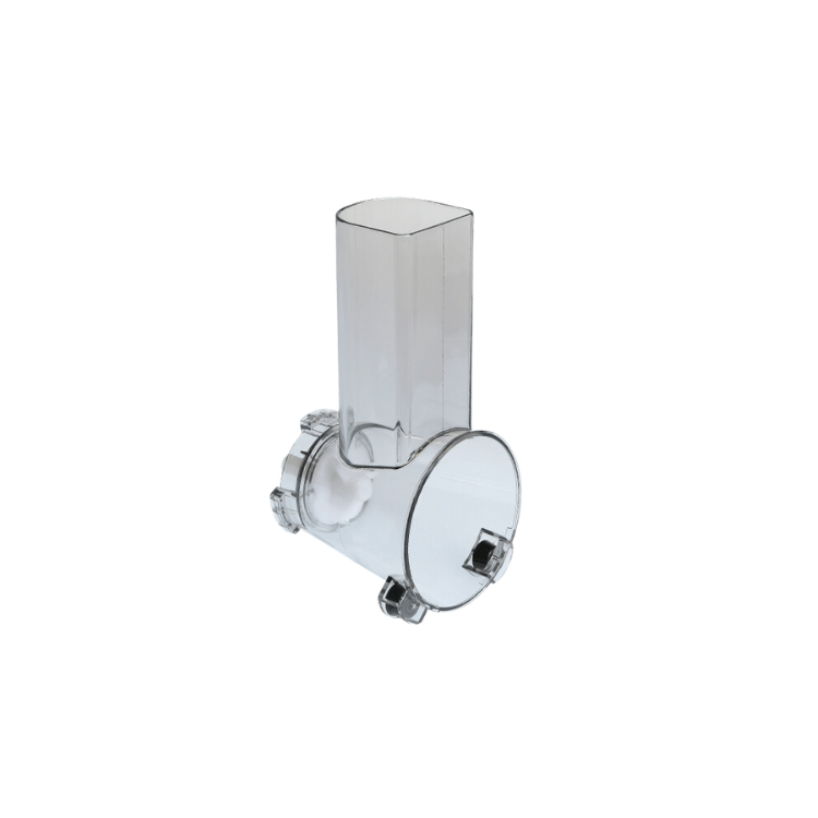 Korpus jest elementem modułu do szatkowania wyciskarki wolnoobrotowej PH 1007. Jest półprzezroczysty, co umożliwia kontrolowanie procesu szatkowania. Dzięki solidnej konstrukcji jest trwały i odporny na uszkodzenia. Dodatkowo korpus jest łatwy do utrzymania w czystości – można go myć zarówno ręcznie jak i w zmywarce.