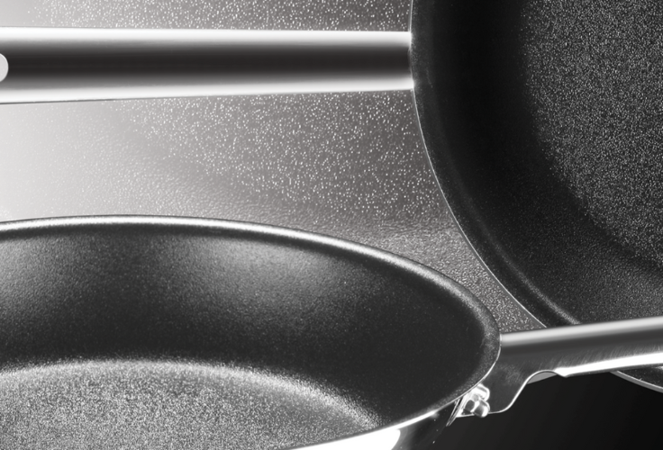 Pamiętaj, że nie wszystkie potrawy można smażyć bez dodatku tłuszczu. Smażenie jajecznicy, naleśników, placków ziemniaczanych czy panierowanych kotletów schabowych, wymaga zastosowania niewielkiej ilości tłuszczu. W tym przypadku stosuj tzw. filtr olejowy, który pełni rolę delikatnej powłoki uniemożliwiającej przypalenie potrawy. Niewielką ilość tłuszczu rozprowadź pędzelkiem lub ręcznikiem papierowym, usuwając jednocześnie jego nadmiar. Przy smażeniu z dodatkiem tłuszczu nie nagrzewaj patelni do testu kropli, ponieważ patelnia nie może być maksymalnie rozgrzana. Jak to sprawdzić? Jeśli krople wody wrzucone na patelnię "tańczą" po jej powierzchni podobnie jak krople rtęci to oznacza, że patelnia rozgrzana jest za mocno. W takim przypadku wyłącz źródło energii i poczekaj, aż patelnia trochę przestygnie. Krople wody powinny wyparować natychmiast po zetknięciu się z powierzchnią patelni - to będzie oznaczać, że możesz położyć filtr olejowy i smażyć jajecznicę. Ta technika dotyczy zarówno smażenia na patelniach groszkowych, płaskich jak i na patelniach ceramicznych.