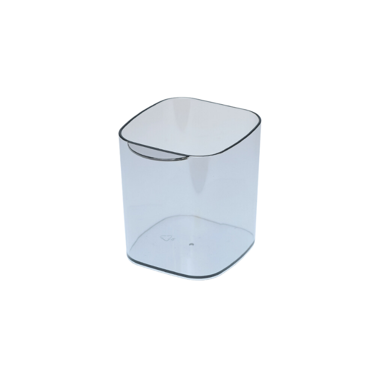 Przezroczysty pojemnik na pulpę przeznaczony jest do gromadzenia resztek owoców, warzyw lub innych produktów spożywczych, które zostały oddzielone od soku w korpusie podczas procesu wyciskania.