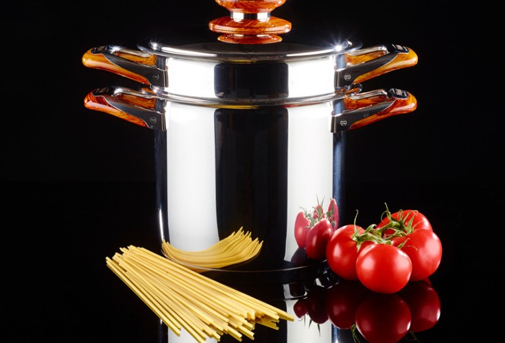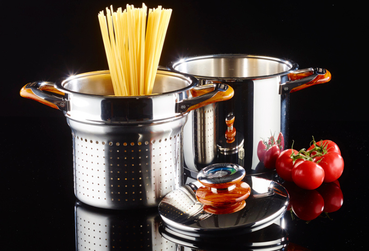 Odpowiednia wysokość naczynia ułatwia gotowanie makaronu nawet dla większej liczby osób. Wkład może służyć także jako naczynie do gotowania na parze.
