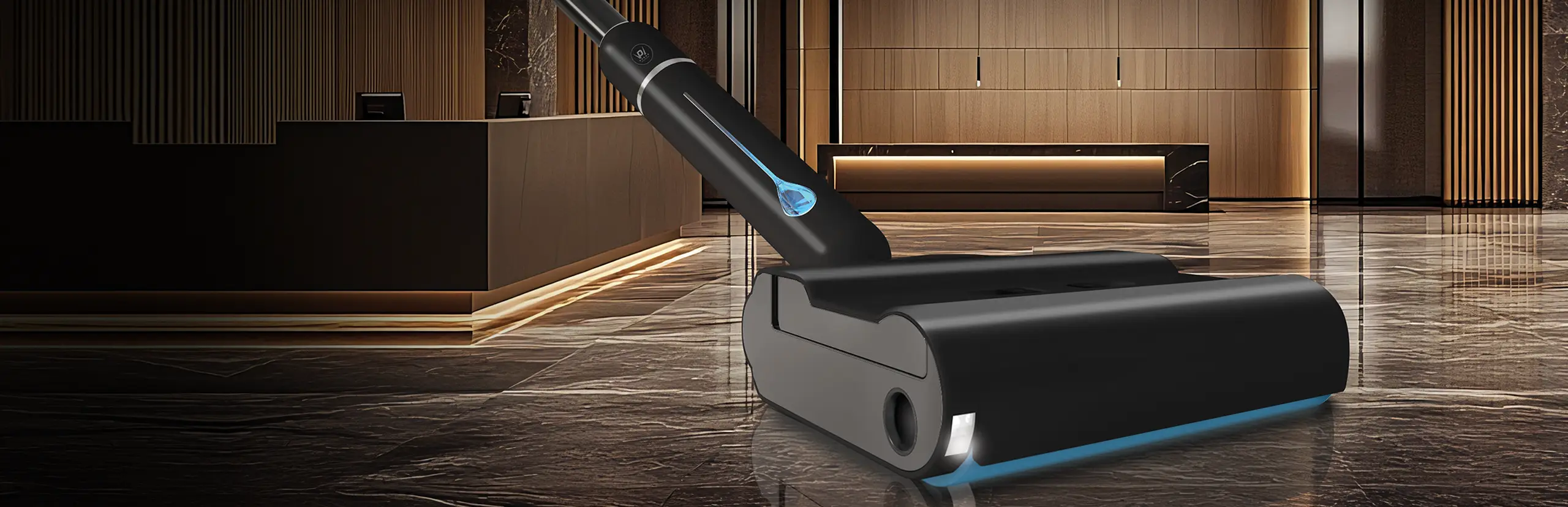 Philipiak Purofare to niezwykle lekkie, zwinne i nowoczesne urządzenie czyszczące z wilgotną polimerową rolką myjącą, która skutecznie usuwa suche i mokre zanieczyszczenia z twardych powierzchni
