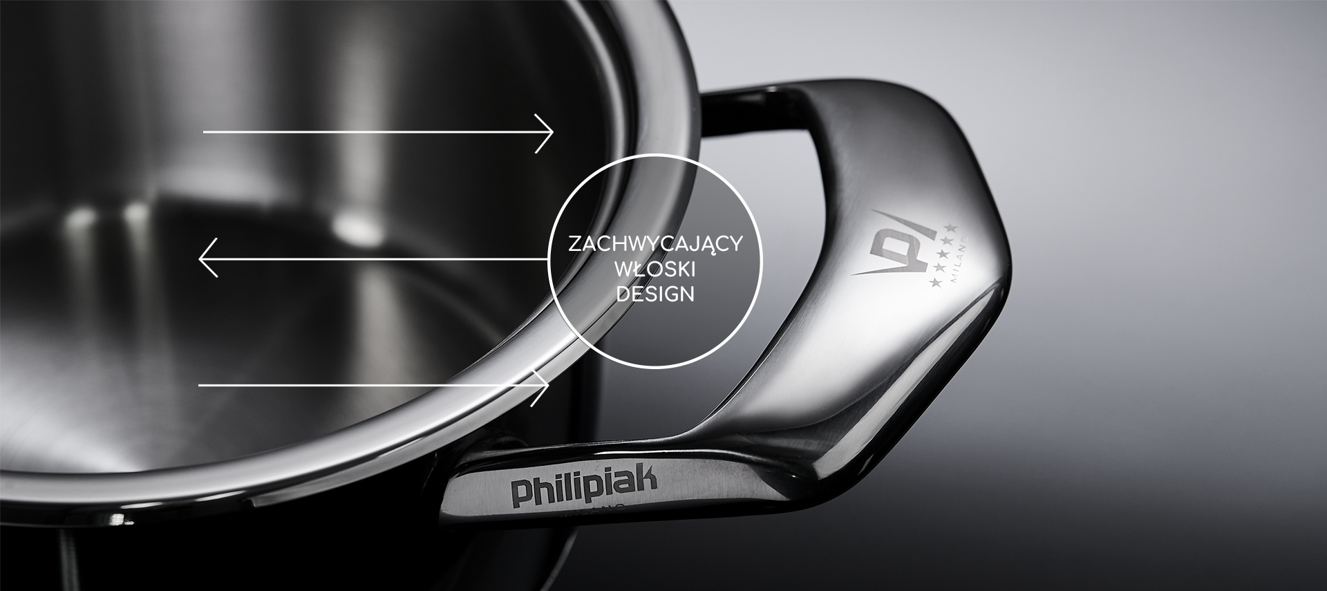 Zestaw garnków Philipiak Versatile to połączenie najwyższej jakości stali 316Ti, nowoczesnych technologii produkcyjnych i eleganckiego włoskiego wzornictwa. Dlatego każde naczynie, które opuszcza naszą mediolańską fabrykę, jest przykładem wyjątkowej staranności rzemieślniczej i dbałości o szczegóły. Zastosowanie najwyższej jakości materiałów oraz innowacyjnych rozwiązań technologicznych ujęte w ramy eleganckiego wzornictwa – oto wyróżniki marki Philipiak Milano.