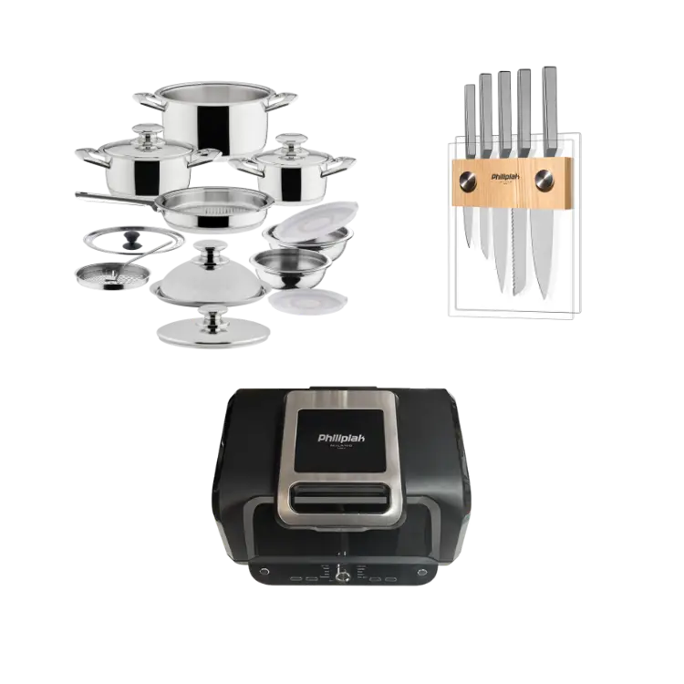 Poznaj wyjątkowy zestaw stworzony z myślą o najbardziej wymagających miłośnikach zdrowego i nowoczesnego gotowania. Komplet bestsellerów marki Philipiak Milano to starannie wyselekcjonowane, najwyższej klasy produkty, które łączą funkcjonalność, estetykę i innowację. To komplet, który odmieni Twoją kuchnię i codzienne gotowanie.